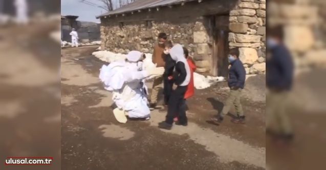 Kar elbiseli kahraman komandoları köylerinde gören çocuklar ise onları sevinçle karşıladı.