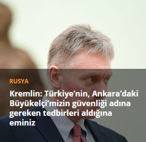 Peskov söz konusu soru karşısında, "Türk tarafının, hem Viyana Sözleşmesi hem de ilişkilerimizin ruhuna uygun olarak, Rus Büyükelçi'nin (Aleksey Yerhov), buradaki Rus şirketlerinin çalışanlarından her birinin ve Türkiye’de bulunan Rus kurumlarının güvenliği sağlamak adına gereken tüm önlemleri aldığından şüphemiz yok" dedi.
