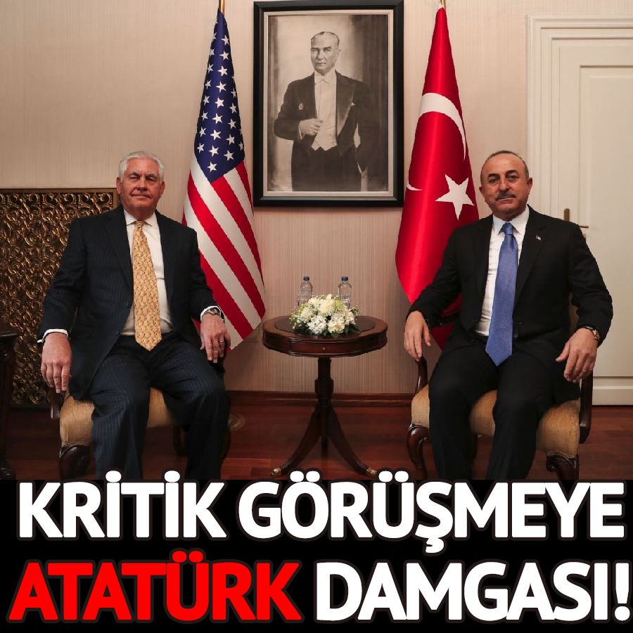 ABD Dışişleri Bakanı Rex Tillerson, Ankara temasları devam ederken bugün mevkidaşı Çavuşoğlu’yla bir araya geldi. Ankara Palas’ta gerçekleşen görüşmelerde Reuters’ın geçtiği fotoğraflarda Atatürk detayı dikkat çekti.