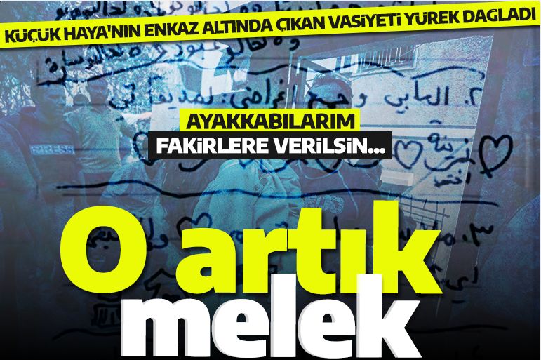 Gökçimen, İsrail'in öldürdüğü Haya ismindeki kız çocuğunun vasiyetinin görselini sosyal medyadan paylaşarak Türkçe anlamını da aktardı. İşte küçük Haya'nın vasiyetinde yazdıkları: