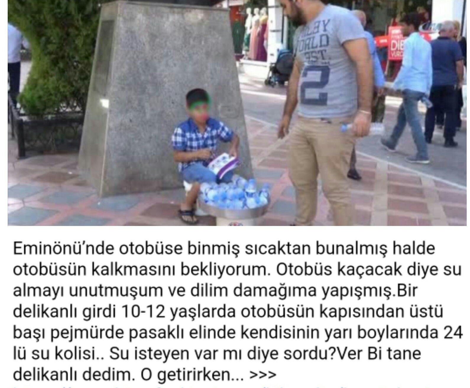 Bir delikanlı girdi 10 12 yaşlarda otobüsün kapısından üstü başı pejmürde pasaklı elinde kendisinin yarı boylarında 24 lü su kolisi…