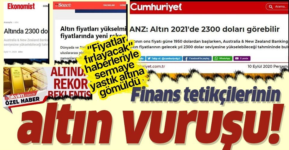 Altının ONS fiyatı 2 bin dolar düzeyinde iken birçok aracı kurum ve medya organı, sık sık "Altın 2,300 doları görecek" şeklinde yatırım tavsiyesi içeren ve vatandaşı altın almaya yönlendiren manipülasyonlara imza atmıştı.