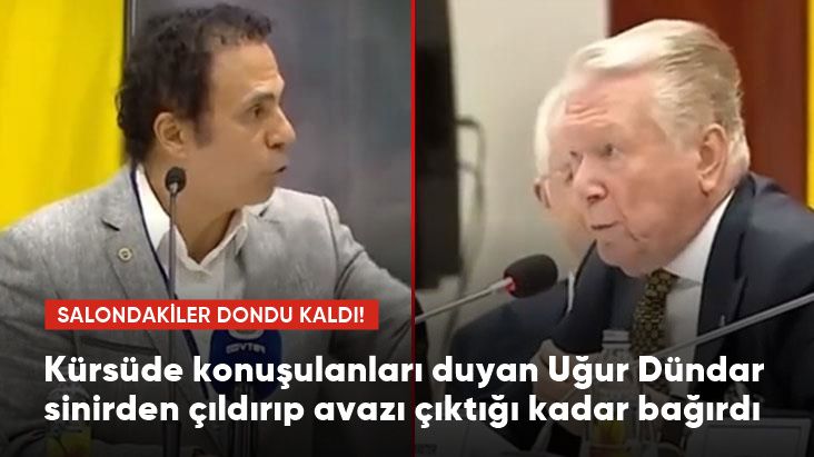 Kürsüde konuşulanları duyan Uğur Dündar, var gücüyle bağırdı: Görevlileri çağıracağım.