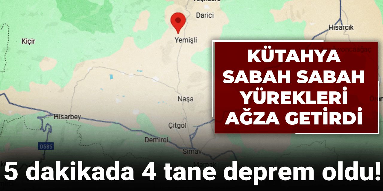 Kütahya'da depremlerin sık sık yaşandığı Simav ilçesi bu sabah sadece 5 dakikada 4 defa sallandı. Önce saat 07.15'te 3.9'luk 2 deprem ile sallanan Simav daha sonra saat 07.17 de 3.8 ve saat 07.20'de 3.1 büyüklüğünde deprem ile sallandı.