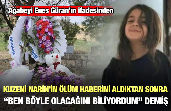 ‘Kasten öldürme suçuna iştirak etme’ iddiasıyla tutuklanan ağabey Enes Güran’ın savcılıktaki ifadesine ulaşıldı. Enes Güran’ın ifadesinde anlattığı, adli kontrol tedbiriyle serbest bırakılan kuzen Melike Güran ve teyzesinin Narin’in ölüm günü ettikleri kavga dikkat çekti.