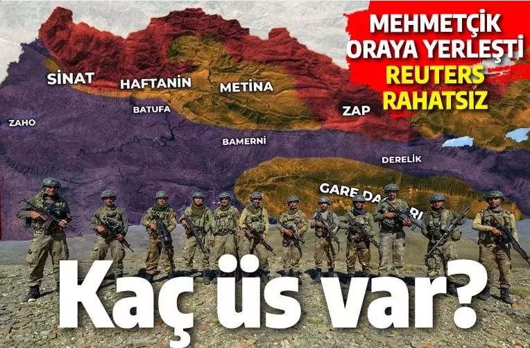 Türkiye'nin 2019 yılına dek Irak'ta 29 adet ileri karakolu vardı. Ancak PKK'ya karşı operasyonlarla birlikte bu sayı mantar gibi çoğaldı. 30 kilometre derinlikte, 150 kilometre uzunlukta bir kuşak boyunca bölgede Türklerin 87 adet karakolu var. Bu karakollarda tanklar ve zırhlı araçlar var. Helikopterler karakollara günlük tedarik sağlıyor."