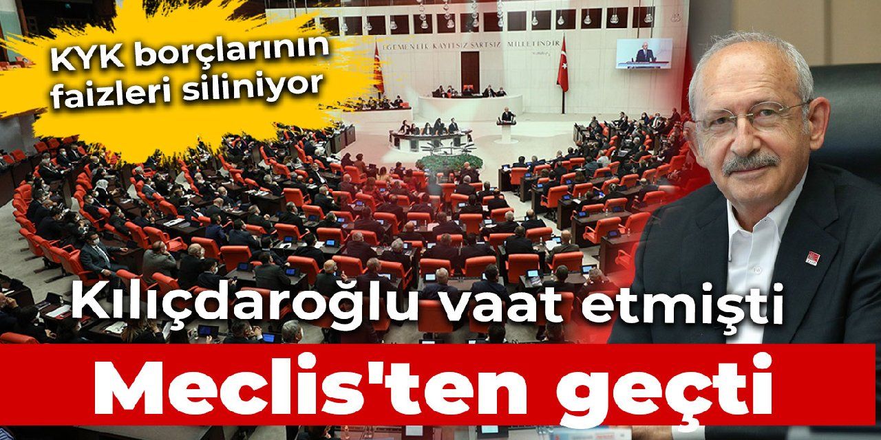 TBMM Genel Kurulu'nda görüşmeleri süren "torba" kanun teklifinin 7'nci maddesi ile Kredi ve Yurtlar Kurumu (KYK) öğrenim kredisi borçlarının faizlerinin silinmesi ilişkin düzenleme kabul edildi.
