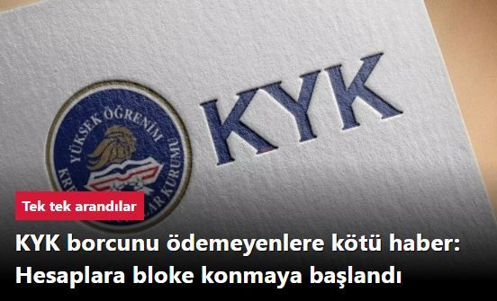 Hazine ve Maliye Bakanlığı, KYK borçlarına yönelik sıkı önlemler alıyor. Bakanlığa bağlı vergi dairelerine bu konuda talimat verilirken birçok vatandaşın ödenmeyen KYK borçları nedeniyle hesaplarına bloke konuldu.