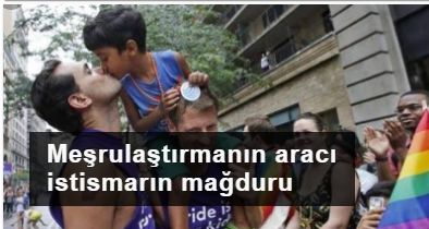 Batı’nın kalbinde, sözde medeniyetin merkezlerinde düzenlenen onur yürüyüşlerinde küçücük çocuklara ağır makyajlar yaptırılıyor, erotik danslar öğretiliyor ve cinselliğini sergilemesi isteniyor. Yine aynı yürüyüşlerde otuzlu yaşlarında bir erkek görüntülerden 10 yaşın altında olduğu anlaşılan bir çocuğu dudağından öpüyor. Çocuk hakları savunucularından en ufak bir ses çıkmadığı gibi LGBTİ hareketi ile kol kola giriyorlar. İkiyüzlülüğe bakın. Adana’da sarıklı bir adam 6 yaşındaki bir çocuğu öpse ortalığı yıkacak olanlar (ki haklı bir yıkış olur) New York’taki eşcinsel erkek aynısını yapınca modernlik zannediyor. Çocuk aynı çocuk! 18 yaşın altında.