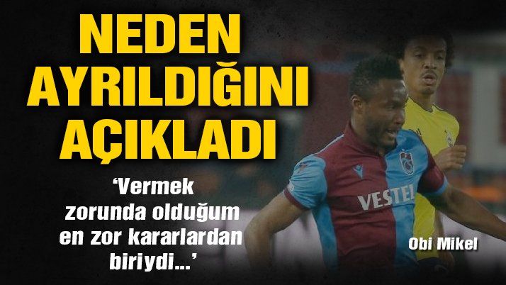 Obi Mikel, “Tüm hayranlarıma destekleri için teşekkür ediyorum. Takım arkadaşlarıma teknik ekibime ve sağlık ekibime teşekkür etmek istiyorum. Şimdiye kadar elde ettiğimiz her şey için, ligi kazanmada iyi şanslar diliyorum. Vermek zorunda olduğum en zor kararlardan biriydi, ama şu anda hepimizin ailelerimize bakması, onlarla zaman geçirmesi ve onları koruması gerekiyor” ifadelerini kullandı.