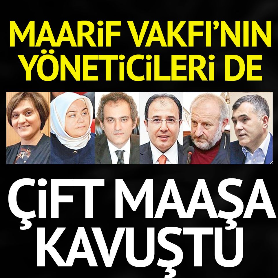 ‘Çifte Maaşlılar' kervanına Maarif Vakfı yöneticileri de katıldı. Kurumun 11 kişilik Mütevelli Heyeti, ikinci maaşa kavuştu. Yönetim kademesinde 3 eski AKP milletvekili ile Milli Eğitim Bakan Yardımcısı Mahmut Özer ve Esenler Belediye Başkan Yardımcısı Hasan Taşçı da bulunuyor. Mütevelli heyet üyeleri, asli kurumlarından maaş alırken, Maarif Vakfı'ndan da 7 bin 500 lira huzur hakkı ücreti ödeniyor. Heyet üyesi eski milletvekilleri de emekli vekil maaşını yanı sıra, Maarif Vakfı'ndan huzur hakkı alıyor. Maarif Vakfı Mütevelli Heyeti şu isimlerden oluştu: