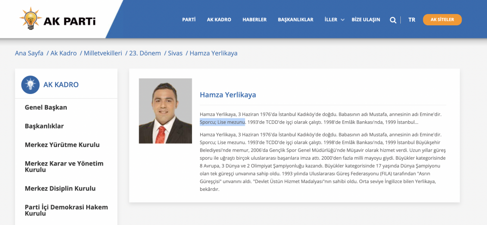 CHP Burdur Milletvekili ve Genel Başkan Başdanışmanı Dr. Mehmet Göker, Cumhurbaşkanı Recep Tayyip Erdoğan'ın danışmanlığını da üstlenen eski güreşçi Hamza Yerlikaya'yla ilgili gelişmeyi paylaştı. Göker'in aktardığına göre, şimdilerde Gençlik ve Spor Bakan Yardımcısı olarak görev yapan Yerlikaya'nın sahte lise diploması kullandığı, mahkemece ortaya kondu:
