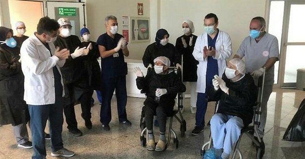 Soma Devlet Hastanesinde Kovid19 tedavileri tamamlanan 87 yaşındaki Mustafa Manisalı ile aynı yaştaki Mehmet Yeşil, son testlerinin negatif çıkması üzerine doktor ve hemşirelerin alkışlarıyla evlerine gönderildi.