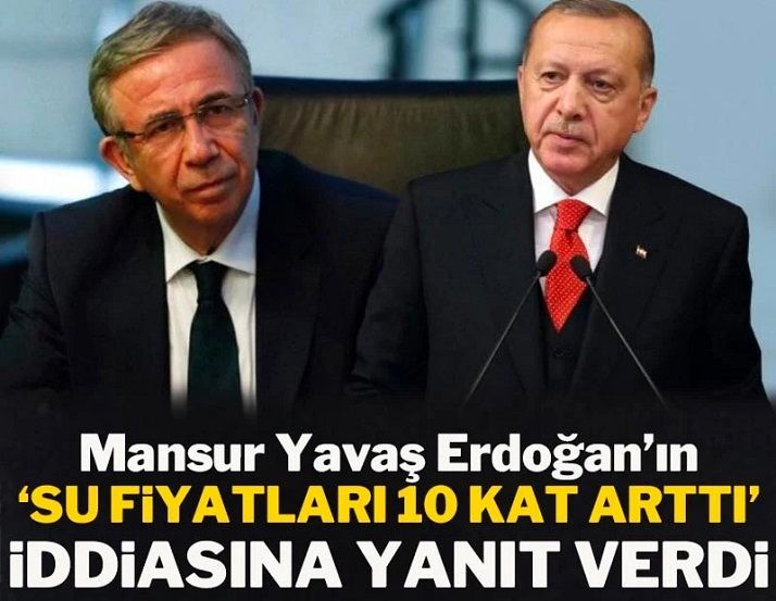 Erdoğan'ın Yeşilay'ın düzenlediği törende yaptığı konuşmada "Bedava yapacağız dedikleri suyun fiyatını 10 kat artırırken, öbür tarafta alkollü içkilerin fiyatını indirmekten söz ediyorlar" ifadelerini kullanmasının üzerine bu iddialara Ankara Büyükşehir Belediye Başkanı Mansur Yavaş'tan yanıt geldi.