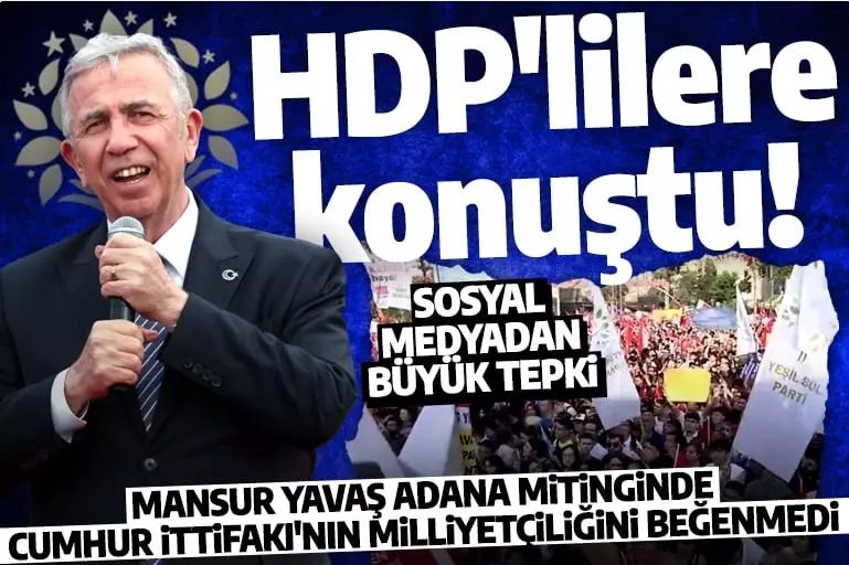 Bu ortamda konuşan Ankara Büyükşehir Belediye Başkanı Mansur Yavaş, Cumhur İttifakı'nı 'milliyetçilik' üzerinden hedef almaya çalıştı. HDP bayraklarına karşı konuşan Yavaş, Cumhur İttifakı'nı işaret ederek "Bazen milliyetçilik taslıyorlar bazen muhafazakarlık. Muhafazakarlıkları da milliyetçilikleri de mevsimlik." iddiasında bulundu.