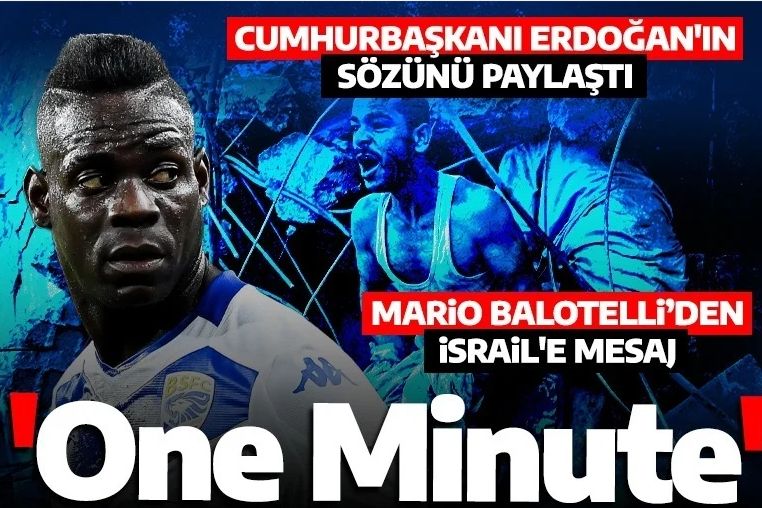 Adana Demirspor'un önemli isimlerinden biri olan futbolcu Mario Balotelli, Cumhurbaşkanı Recep Tayyip Erdoğan'ın Davos'taki 'One Minute' çıkışını takipçileriyle paylaşarak İsrail'e bir mesaj iletti.