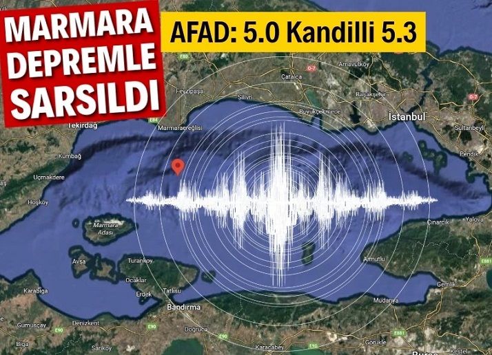AFAD, 5.0 büyüklüğündeki depremin merkez üssünün Marmaraereğlisi (Tekirdağ) olduğunu duyurdu.