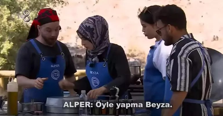 Beyza Aydın'ın kızgın yağ dolu tepsiyi çevirdiği sırada yüzüne yağ döküldüğü görüldü. Yarışmacılar büyük panik yaşarken Erim sağlık ekiplerinden yardım istedi.