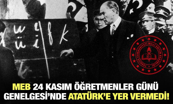 Milli Eğitim Bakanlığı 24 Kasım Öğretmenler Günü kutlamalarına ilişkin genelge yayımladı. Yusuf Tekin’in imzasıyla 81 ile gönderilen genelgede Atatürk’e yer verilmedi. Kutlama kurallarının da yer aldığı genelgede, “Başta şehit öğretmenler olmak üzere ebediyete irtihal etmiş öğretmenler kabirleri başında anılacak, şehit öğretmenlerin aileleri ve huzurevlerinde kalan emekli öğretmenler ziyaret edilecek ve emekli öğretmenlerin, emekli oldukları okullardaki programlara öncelikle davet edilmeleri sağlanacak” ifadeleri kullanıldı.