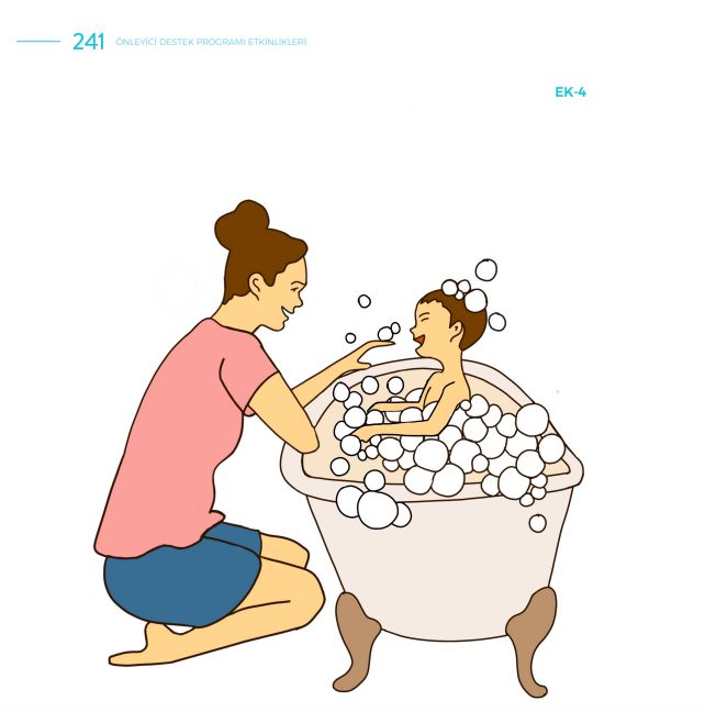 Diğer yandan aynı kitabın 241. sayfasında hususi bir eşleştirme yapıldığı iddiasını çürütebilecek bir başka görsel var. Bu görselde başı açık bir kadın var ve olumsuz resmedilmemiş. Görsel yıkanırken çocuğuna yardım eden bir anneyi temsil ediyor.