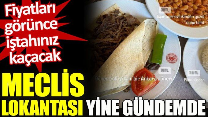 Meclis lokantasından bir yemek masasının paylaşıldığı fotoğrafın üzerinde yemeklerle ilgili yorumlar ve fiyatlar da yer aldı. Söz konusu fotoğrafta Ankara döneri, salata, pilav ve İspir fasulyesi olduğu görüldü.