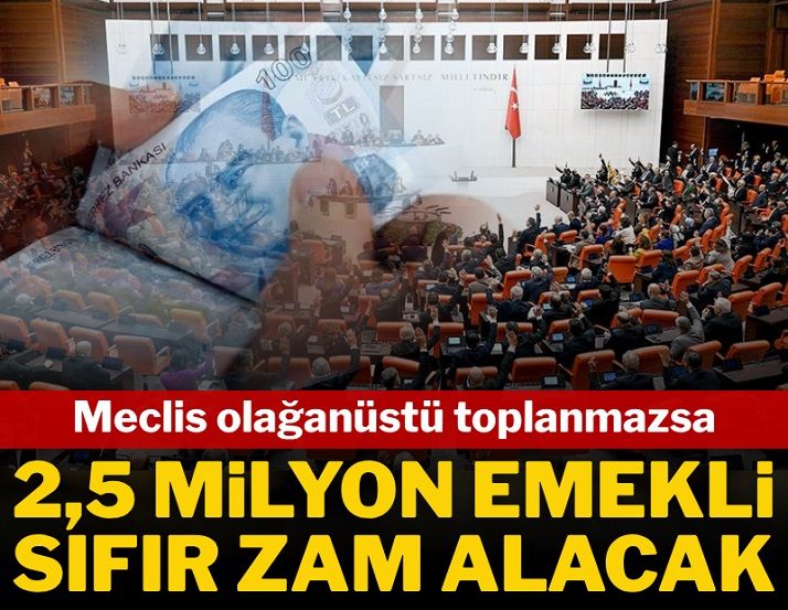 Halihazırda 14 bin 469 TL olarak belirlenen en düşük emekli maaşını alan milyonlarca emekli, temmuz ayında Meclis'in olağanüstü toplanmaması halinde fiilen hiçbir zam almamış olacak.