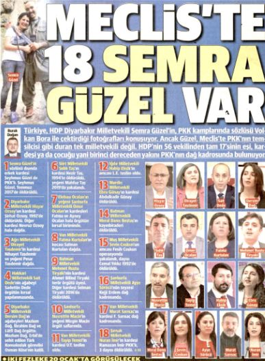 HDP Diyarbakır Milletvekili Semra Güzel’in terörist sözlüsü Volkan Bora ile fotoğrafları ile ilgili tartışmalar sıcaklığını korurken, HDP’nin diğer milletvekillerinin de bir ayağı da Kandil’de. Halihazırda Türkiye Büyük Millet Meclisi çatısı altında görev yapan 17 milletvekilinin ya eşi, ya kardeşi ya da çocuğu terör örgütünün dağ kadrosunda faaliyet gösteriyor.