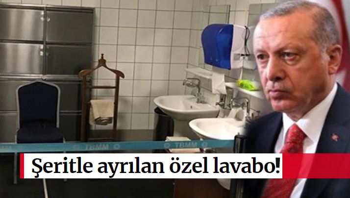 AKP Genel Başkanı ve Cumhurbaşkanı Recep Tayyip Erdoğan’a Meclis’e geldiğinde gösterilen ‘özel önem’, ana binada milletvekillerinin kullandığı mescide kadar uzandı. Mescidin yanında abdest de alınan tuvaletlerdeki iki lavabonun önüne bant çekilip, Erdoğan için ‘rezerve’ edilmesi milletvekillerinin tepkisini çekti.