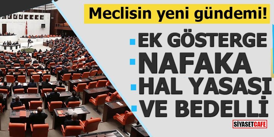 Meclisin yeni gündemini 3600 ek gösterge, nafaka, hal yasası ve yeni askerlik sistemi ile bedelli askerlik düzenlemeleri görüşülecek.