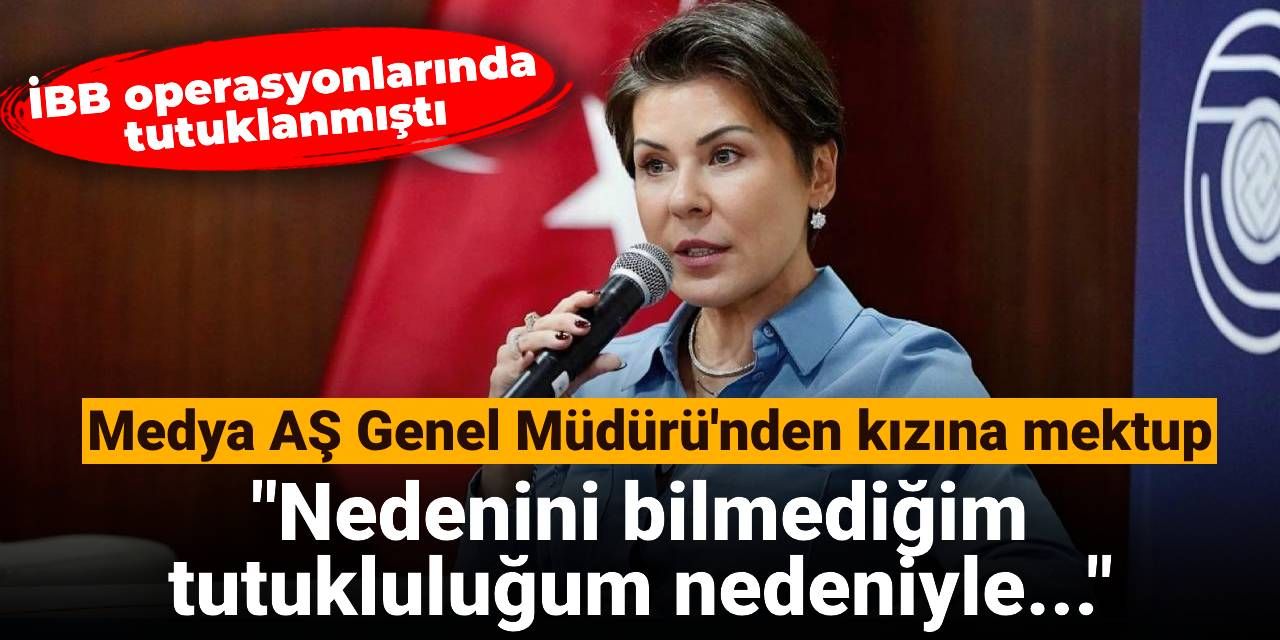 İstanbul Büyükşehir Belediyesi’ne (İBB) yönelik soruşturmalar kapsamında tutuklanan İstanbul Medya AŞ Genel Müdürü Pınar Türker, cezaevinden kızına mesaj gönderdi.
