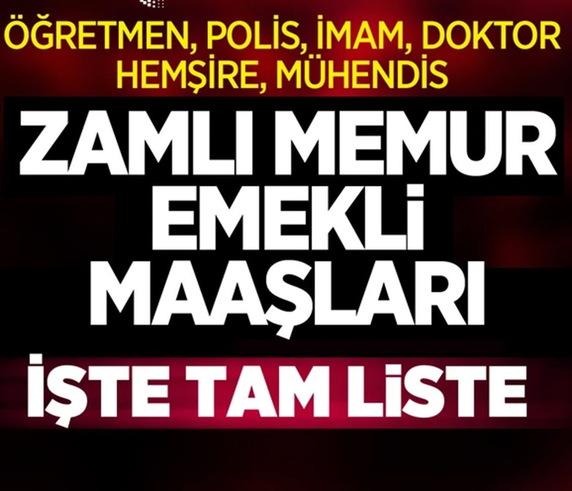 Memur emekli zamlı maaşlar tam liste! Temmuz 2022 öğretmen, polis, hemşire, imam