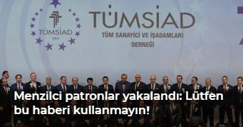 AKP desteğiyle büyüyen Menzil tarikatının işadamı yapılanması olan Tüm Sanayici ve İşadamları Derneği’nde bir şube başkanı (TÜMSİAD), Halk Bankası bölge koordinatörünü konuk ettiği sırada ‘Bankalar piyasaların ihtiyacını karşılayamıyor’ dedi. Daha sonra dernekten haber merkezlerine “Haberi kullanmamanızı rica ediyoruz” mesajı gönderildi.