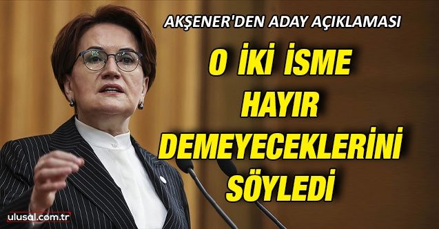 İBB Başkanı Ekrem İmamoğlu ve Ankara Büyükşehir Belediye Başkanı Mansur Yavaş'ın anketlerde iyi gittiğini ifade eden Meral Akşener, iki ismin Millet İttifakı adayları olduğunu söyledi.
