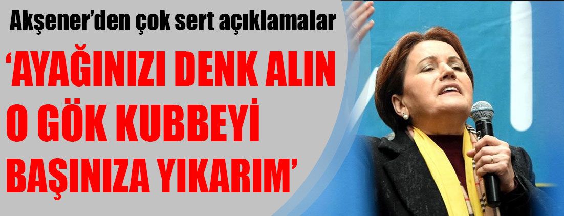 Bu milletin mensuplarının kurduğu, kurdurduğu yapıdır. Herkesi kucaklayan partidir. Onun için bizi durdurmaya kimsenin gücü yetmeyecektir. Buradan abidik gubidiklere alışmışlara sesleniyorum ayağınızı denk alın. İYİ Parti’nin seçimlere girmek için hiçbir şartı eksik değildi. Eğer engel olmaya kalkarsanız bende Meral Akşener’sem o gök kubbeyi başınıza yıkarım. Buradan size bir çağrım var İYİ Parti sandıklara sahip çıkacak ama sizler de sandıklarınıza sahip çıkacaksınız. Kendini Erdoğan’a sevdirmek için uğraşan bir zatın bir sözü var “Harp halidir her şey mubahtır” Geçen referandumdaki gibi YSK üzerinden bir hileye başvurursanız bütün fetvalarınızı size yediririm.