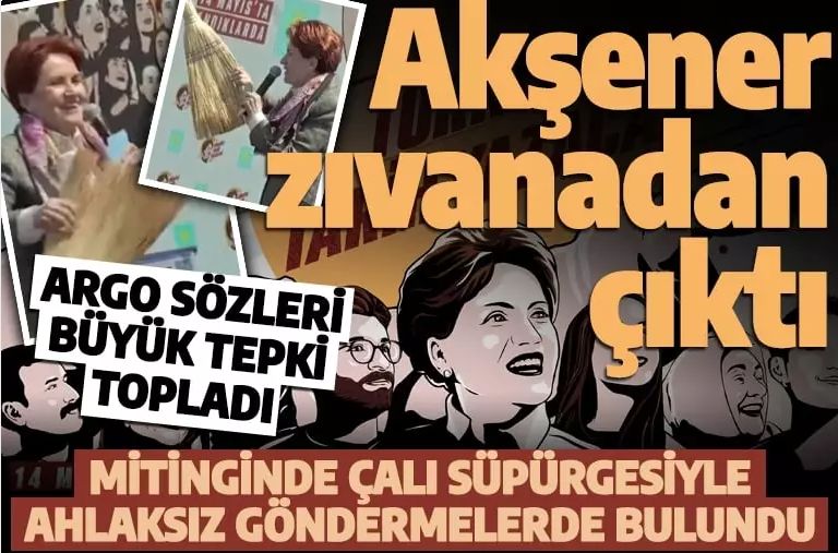 Mitingde Akşener'den önce Ankara Büyükşehir Belediye Başkanı Mansur Yavaş açıklamalarda bulundu. Yavaş'ın ardından sahneye çıkan Akşener eline bir çalı süpürgesi alarak 'Kadınlara sesleniyorum' dedi ve süpürgenin sapıyla ilgili bel altı uslUpsüz göndermelerde bulunarak herkesi şaşırttı.