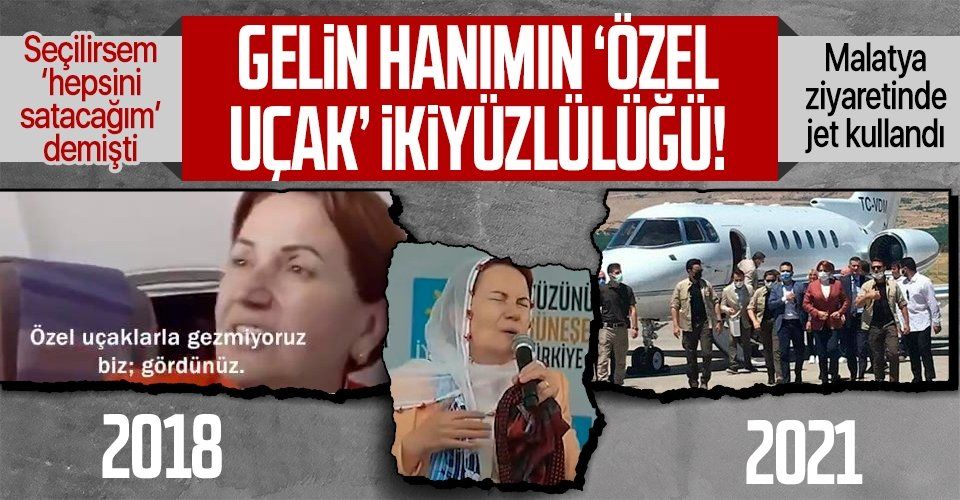 Akşener'in "özel uçak kullanmayacağım, iktidara gelince hepsini satacağım" açıklamalarının ardından bugün Malatya ziyaretine özel uçakla gitmesi verdiği sözü tutmadığını ve söylediklerinin yalandan ibaret olduğunu bir kez daha gözler önüne serdi.