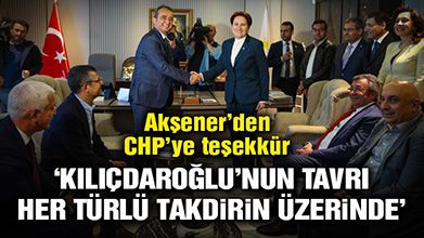 İYİ Parti Genel Başkanı Meral Akşener, “CHP ve değerli Genel Başkanı Sayın Kemal Kılıçdaroğlu’nun ortaya koyduğu tavır her türlü takdirin üzerindedir” dedi.