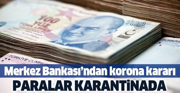 Merkez Bankası, Türkiye genelindeki tüm banknotlar için karantina uygulaması başlattı. Banknotlar en az 7 gün süre ile izole edilmiş alanlarda bekletiliyor. Daha önce dolaşıma sokulmamış banknotların kullanılmasına ağırlık verildi.