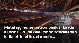 Paylaşılan kayıtta firma idarecisinin BMİS üyesi işçiye “1520 dakika içerisinden sendikadan istifa ettin ettin. Etmedin benim sana diyecek birşeyim kalmadı. Hakkını helal et. O sendikanın buraya girme şansı yok zaten yüzde 80 heralde Çelikİş aldı. Ben seni kaybetmemek için diyorum, sen bilirsin… Birleşik Metal’e üye olan herkes işten atılacak.” dediği belirtildi.