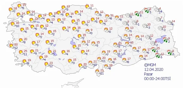 12 NİSAN 2020 PAZAR HAVA DURUMU