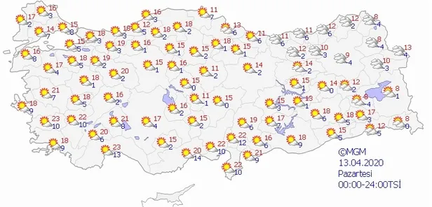 13 NİSAN 2020 PAZARTESİ HAVA DURUMU