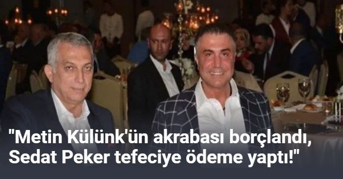 Peker’in anlattığına göre, Metin Külünk bir akrabasının tefecilere borcu olduğunu, bunun karşılığında arsasının elden gideceğini, bu konuda tefecilerle konuşarak yardım etmesini rica etmiş.