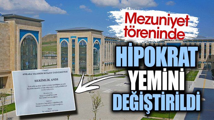 Ankara Yıldırım Beyazıt Üniversitesi Tıp Fakültesi öğrencileri, mezuniyet törenlerinde bir skandalla karşılaştı. Üniversite yönetimi, Hipokrat Yemini’ni değiştirerek öğrencilerden kendileri kaleme aldıkları metni okumalarını istedi.