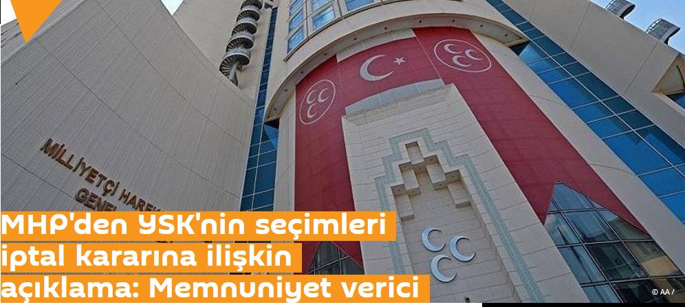 “YSK kararına, toplumun her kesiminin saygılı olması demokrasi ve hukukun üstünlüğünün bir gereğidir. Bu karar karşında, hiç kimsenin Türkiye’yi kaosa, kargaşaya, krize sürüklemeye kalkmaması, bu yöndeki girişimlerin güvenlik güçlerince engellenmesi gerekmektedir. MHP; yenilenme kararı verilen seçimde Cumhur İttifakının başarısı için tüm teşkilat birimleri ile her türlü gayretin içerisinde olacaktır. 23 Haziran 2019 tarihinde yapılacak olan İstanbul seçimlerinin ülkemize, milletimize ve İstanbul halkına hayırlı olmasını diliyoruz.”