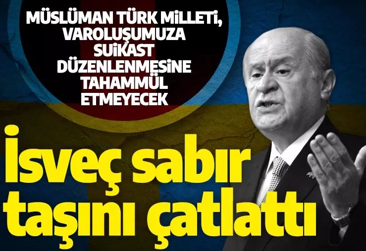 MHP Genel Başkanı Devlet Bahçeli, sosyal medya hesabından yaptığı açıklamada İsveç'te Kur'anı Kerim'in yakılmasına izin verilmesine ilişkin açıklama yaptı. İsveç'in sabır taşını çatlattığını söyleyen Bahçeli, "Kur'anı Kerim'in yakılmasına izin vermek en az yakmak kadar iğrenç ve ilkel bir rezalettir." dedi. Bahçeli'nin açıklamaları şu şekilde: