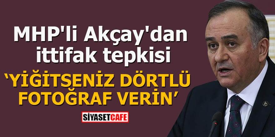MHP Grup Başkanvekili Erkan Akçay muhalefet partilerini eleştirerek "CHP, HDP, İYİ Parti ve Saadet Partisi ittifak oluşturmuşlar ama birlikte resim vermekten bile imtina ediyorlar. Yiğitseniz çıkın birlikte o dörtlü fotoğrafı verin bakalım" dedi.