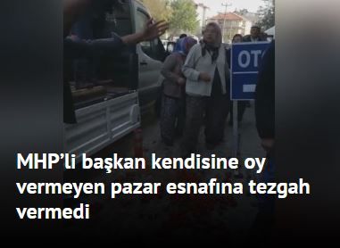 Necati Selçuk’un kendisine oy vermeyen pazarcı esnafının pazardaki yerlerini de iptal ettiğini belirten Akdeniz, “Mustafa Çakır, İsmail Akın, Süleyman Mezarcı, Ünal Ülgen, Kamil Turan ve daha başka arkadaşlarımızı pazardaki yerleri iptal edildi. Gaz betonla yerleri kapatıldı. Sarıgöl’ün cuma pazarında yayılmak isteyen pazarcı esnafına izin verilmedi. Pazarcı esnafı 2–3 yıldan beri kiralarını ödeyerek bu pazara geliyorlar. Belediye başkanı kendilerine oy vermediği gerekçesi ile pazarcı esnafının yerlerini iptal etti. Dün, cuma sabahı pazara yayılmak için gelen pazarcı esnafına zabıtalar izin vermedi” diye konuştu.