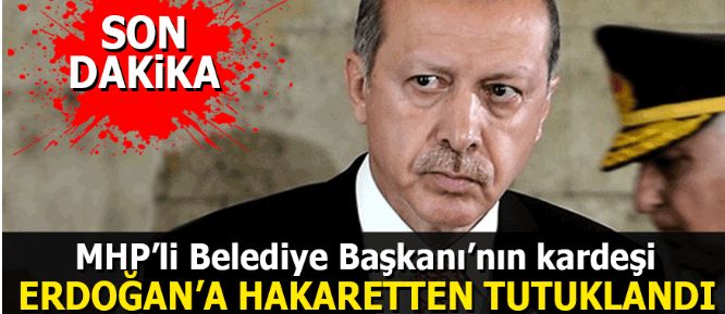 Cumhurbaşkanı ve AKP Genel Başkanı Erdoğan'a başbakanlığı döneminde hakaret eden ve hakkında dava açılan MHP’li Belediye Başkanı Hüseyin Sözlü’nün kardeşi Vedat Sözlü 1 yıl 2 ay 17 gün hapis cezasına çarptırıldı.