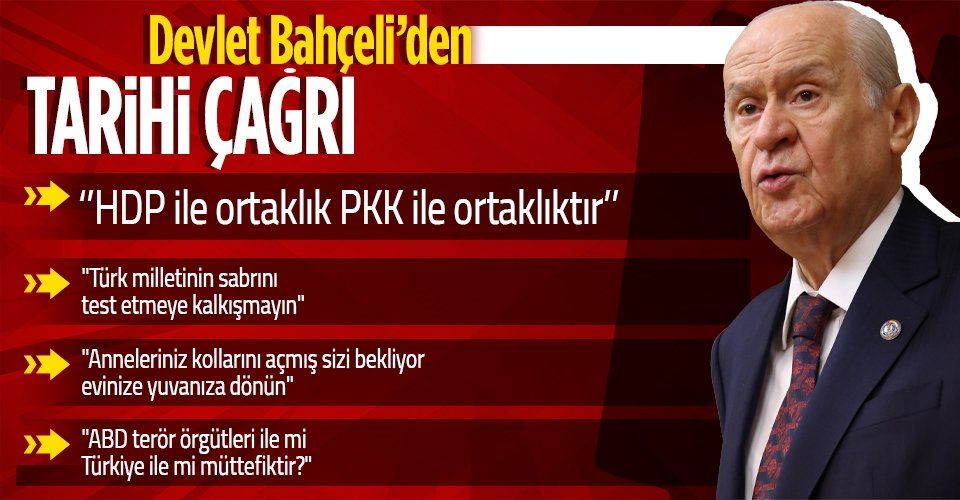 MHP Lideri ayrıca ABD'ye seslendi. Bahçeli, "Teröre yardım ve yataklık yapan güçler Türk milletinin sabrını test etmeye kalkışmasın.
