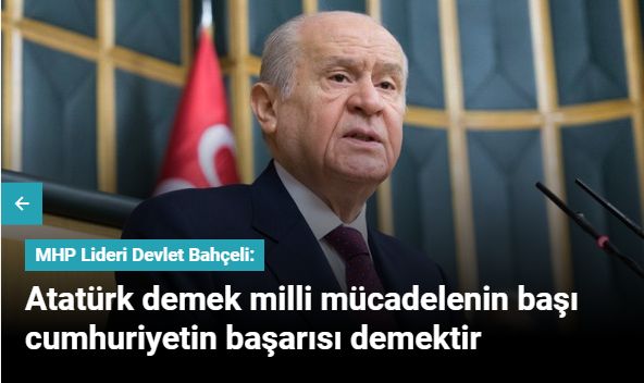 Şu hususu tarih ve millet huzurunda ifadeye vazifeliyiz ki, Gazi Mustafa Kemal Atatürk’ün emanetleri Milliyetçi Hareket Partisi’nde ve Cumhur İttifakı’ndadır, bu milli emanetlere de asla leke sürdürülmeyecektir.